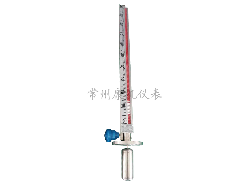 液位計根據浮力原理和磁性耦合作用研制而成。當被測容器 中的液位升降時,液位計本體管中的磁性浮子也隨之升降,浮子 內的磁鋼通過磁耦合傳遞到磁翻柱指示器,驅動紅、白翻柱 翻轉180°,當液位上升時翻柱由白色轉變為紅色,當液位下降時翻柱由紅色轉變為白色,指示器的紅白交界處為容器內部液位的實際高度,從而實現液位清晰的指示。