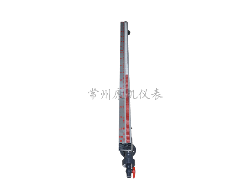 磁性翻柱液位計由浮子、立管組件、指示器三部分組成。浮子在立管組件內隨液位的變化而上升或下降,通過磁耦合作用,帶動立管組件外的指示器顏色發生變化(液紅氣白),從而指示出液位高度。液位報警開關安裝在立管組件外部相應的報警位置上,當浮子隨液位到達報警位置時,報警開關閉合,發出開關信號;液位遠傳變送器也安裝在立管組件外部,通過磁耦合將液位的變化線性地轉換成4—20mA電流信號遠傳給控制室,實現液位的顯示、測量、控制和記錄。