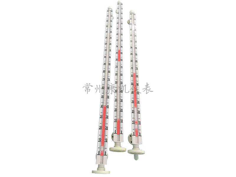 磁性翻柱液位計由浮子、立管組件、指示器三部分組成。浮子在立管組件內隨液位的變化而上升或下降,通過磁耦合作用,帶動立管組件外的指示器顏色發生變化(液紅氣白),從而指示出液位高度。液位報警開關安裝在立管組件外部相應的報警位置上,當浮子隨液位到達報警位置時,報警開關閉合,發出開關信號;液位遠傳變送器也安裝在立管組件外部,通過磁耦合將液位的變化線性地轉換成4—20mA電流信號遠傳給控制室,實現液位的顯示、測量、控制和記錄。