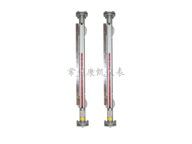 磁性翻柱液位計由浮子、立管組件、指示器三部分組成。浮子在立管組件內隨液位的變化而上升或下降,通過磁耦合作用,帶動立管組件外的指示器顏色發生變化(液紅氣白),從而指示出液位高度。液位報警開關安裝在立管組件外部相應的報警位置上,當浮子隨液位到達報警位置時,報警開關閉合,發出開關信號;液位遠傳變送器也安裝在立管組件外部,通過磁耦合將液位的變化線性地轉換成4—20mA電流信號遠傳給控制室,實現液位的顯示、測量、控制和記錄。